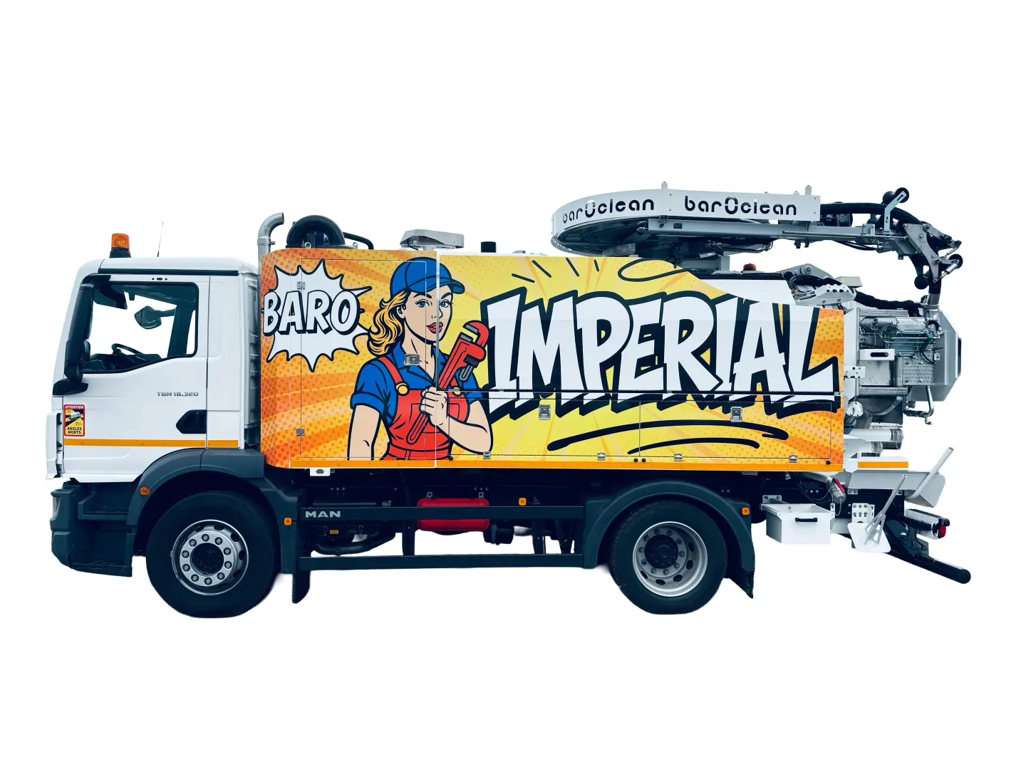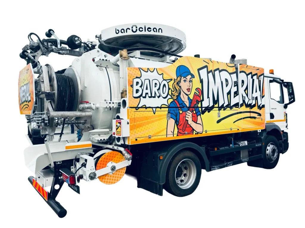 Baroclean Imperial 16/18T to największy brat w rodzinie Imperial – potężny pojazd do zadań specjalnych, stworzony z myślą o najbardziej wymagających warunkach pracy. Oparty na solidnej ramie o dopuszczalnej masie całkowitej 18 ton, łączy ogromną moc z niezawodnością. Wyposażony w zbiornik osadów o pojemności 7000 litrów oraz zbiornik wodny 3000 litrów, dostępny również w konfiguracji 6000 litrów zbiornika na szlam i 4000 litrów na wodę. Zapewnia maksymalną efektywność w pracy ciągłej.