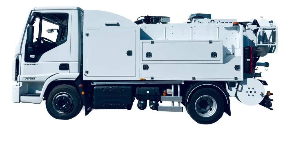 Jego całkowita wysokość 1,80 m pozwala na dostęp do niskich garaży i studzienek kanalizacyjnych, ułatwiając prace czyszczące. Pojazd idealnie sprawdzi się do pracy w ciasnych miejskich zabudowach.
